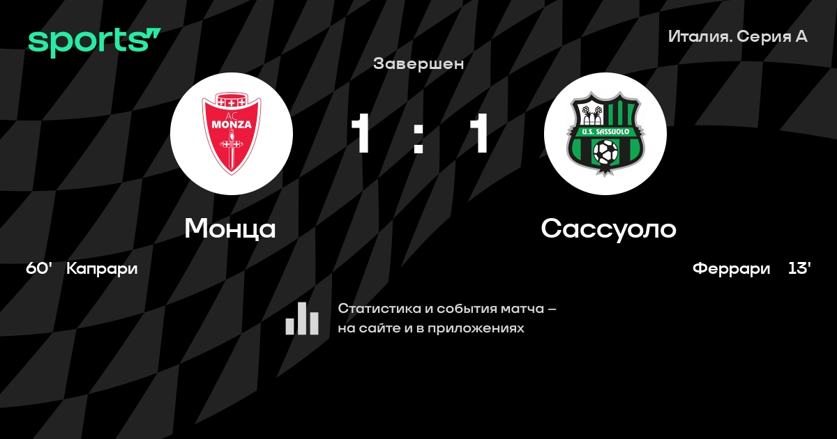 Монца – Сассуоло: Сассуоло не проигрывает в 6 из 7 последних матчей против этого соперника
