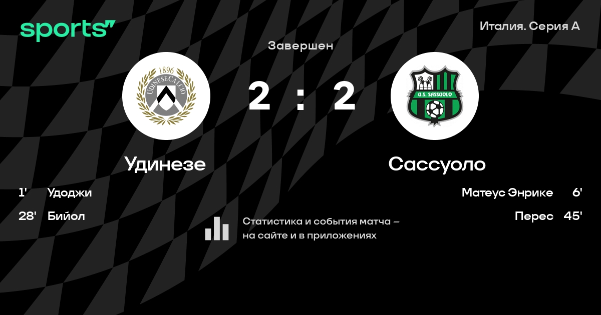 Удинезе – Сассуоло: Сассуоло забивает в 3 последних матчах против этого соперника