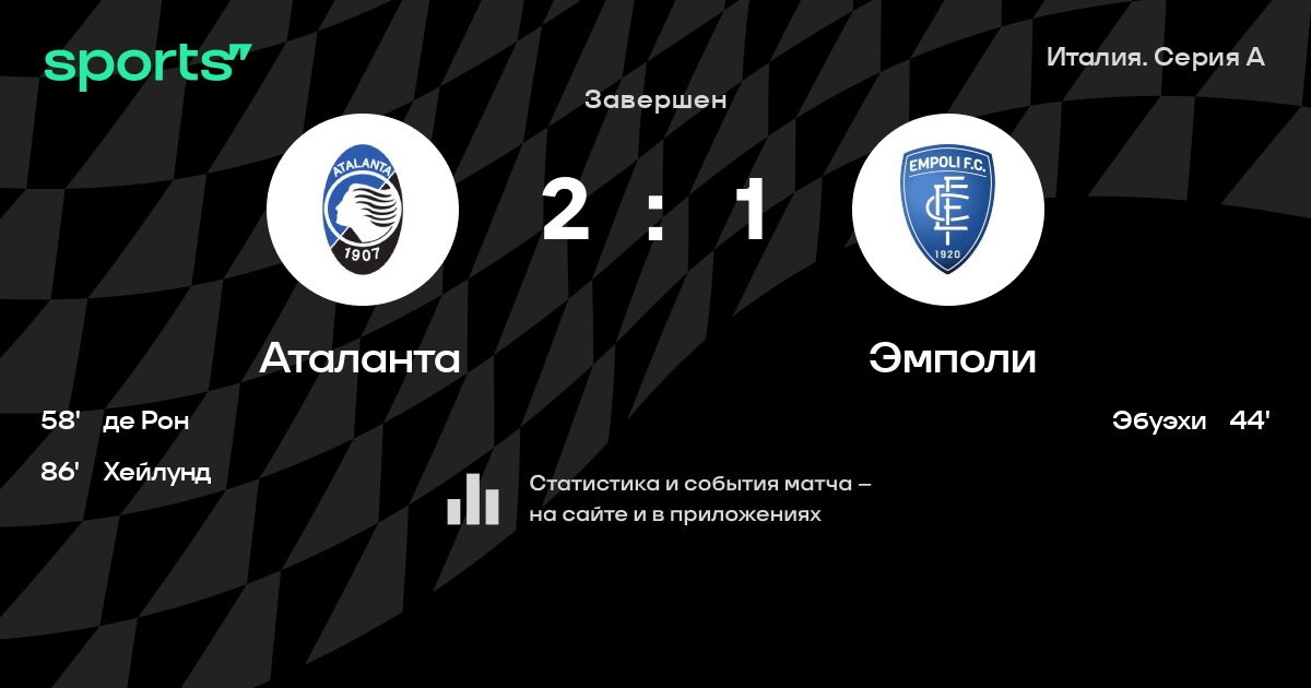 Муссо - Скальвини, Паломино, Толои - Руджери, Пашалич, Эдерсон, де Рон, Дзаппакоста - Муриэль, СапатаЗапасные: Росси, Спортьелло, Соппи, Демирал, Мэле, Околи, Чивиса, Коломбо, Лукман, Бога, Хейлунд