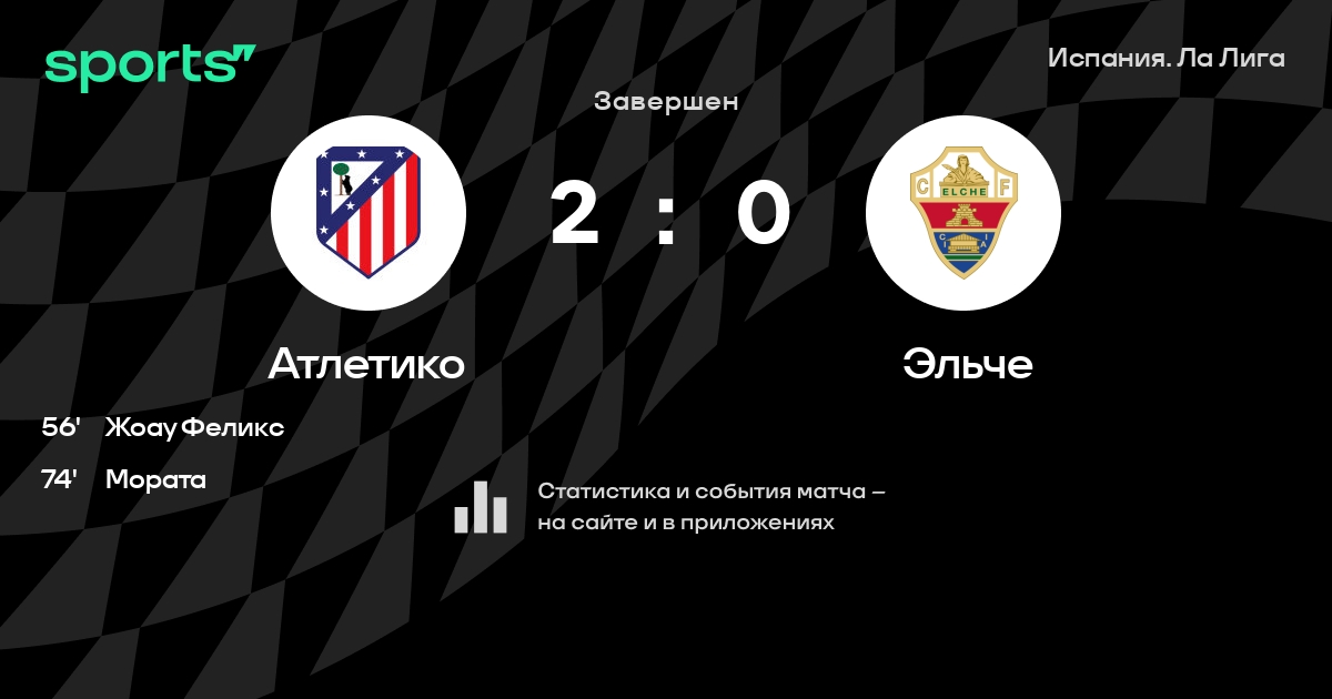 «Атлетико» победил «Эльче» – 2:0. Феликс и Мората забили, Верду, Эрмосо и Кина были удалены