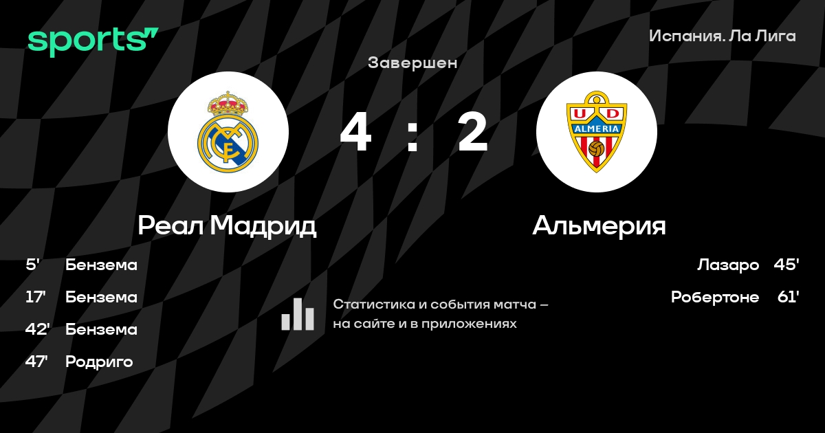 Реал Мадрид – Альмерия: Реал Мадрид побеждает в 6 последних очных матчах