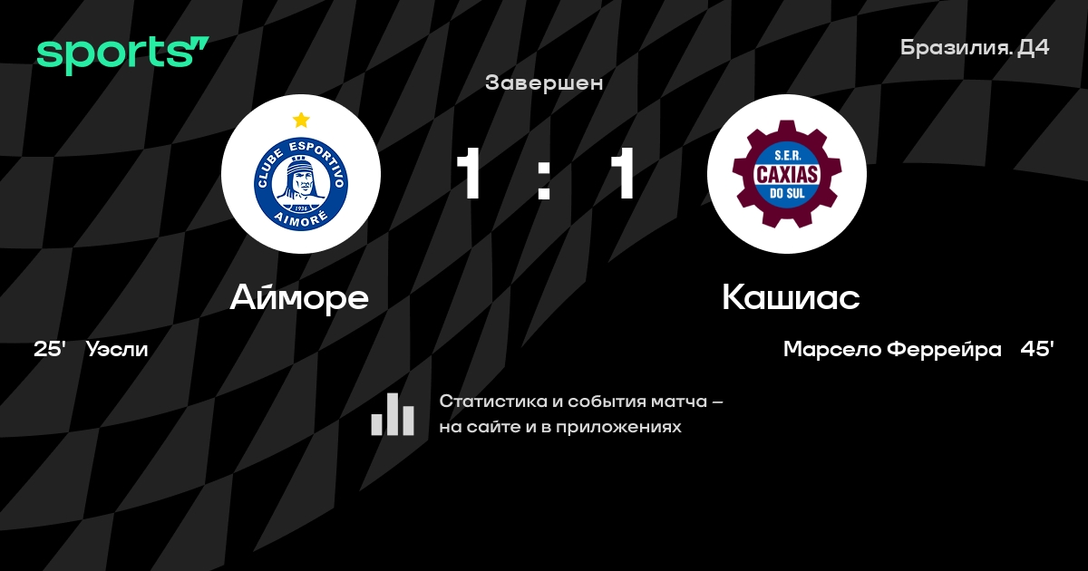 Айморе – Кашиас: Кашиас не проигрывает в 10 из 11 последних матчей против этого соперника