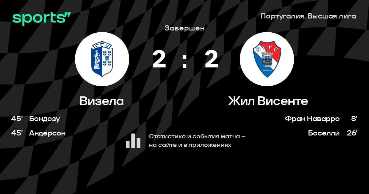 Визела – Жил Висенте: Жил Висенте не проигрывает в 7 последних матчах против этого соперника