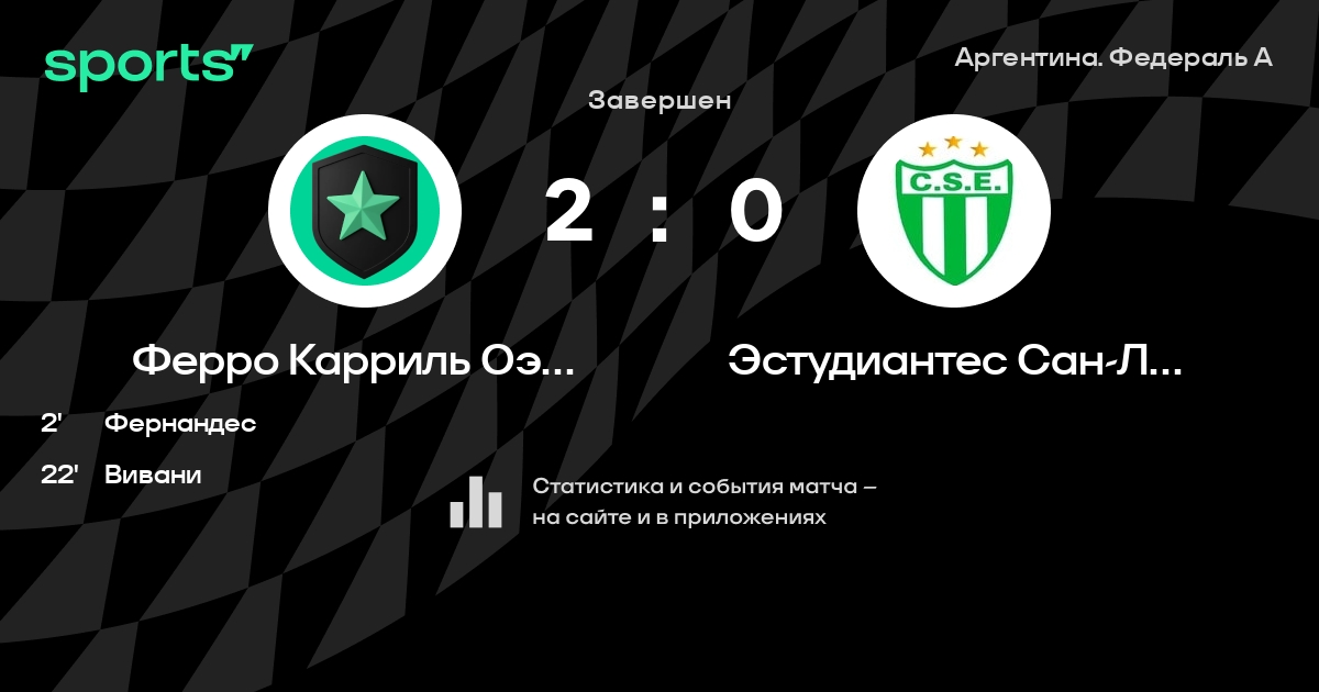 Ферро Карриль Оэсте ЛП – Эстудиантес Сан-Луис: Ферро Карриль Оэсте ЛП забивает в 4 последних матчах против этого соперника