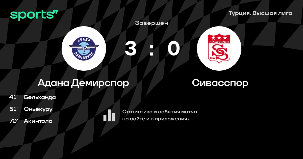 Адана Демирспор – Сивасспор: Сивасспор не проигрывает в 8 последних матчах против этого соперника