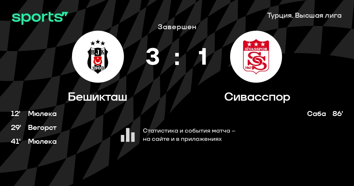 Бешикташ сохраняет лидерство, Галатасарай терпит поражение в добавленное время, Сивасспор побеждает впервые в сезоне