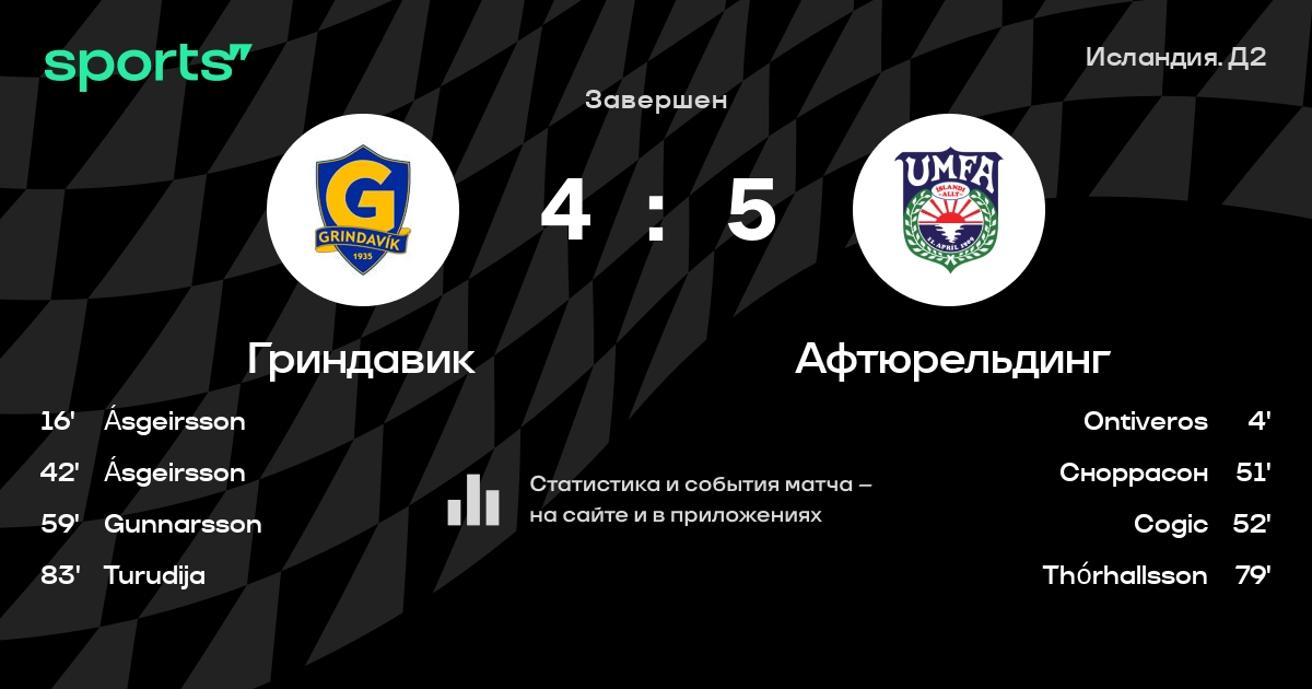 Эстеве - Hoti, Gunnar Bergmann Sigmarsson, Sævarsson, Bjarnason - Сноррасон, Азиз, Hlifarsson, Ásgeirsson, Kári Enesson Cogic - Ontiveros RoblesЗапасные: Jóhannesson, Сигурдссон, Bjarkason, Fridriksson, Leósson, Þórhallsson, Guðmundsson