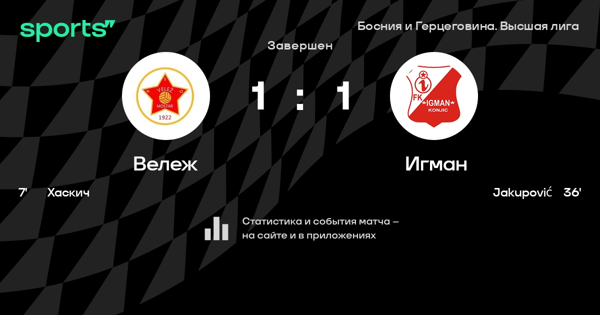 Вележ – Igman Konjic: Вележ забивает в 3 последних матчах против этого соперника