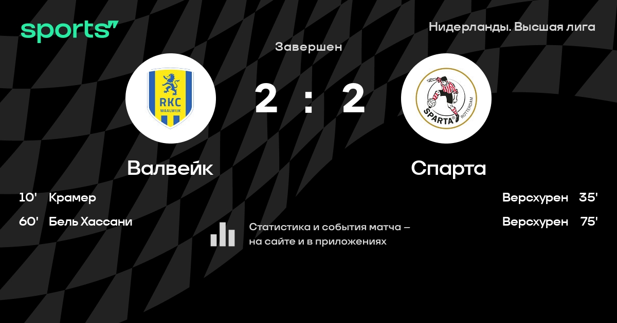 Валвейк – Спарта: Спарта забивает в 8 из 10 последних матчей против этого соперника