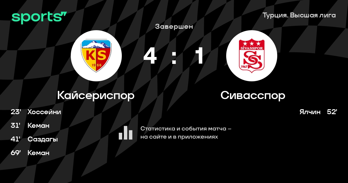 Кайсериспор – Сивасспор: Сивасспор не проигрывает в 5 из 7 последних матчей против этого соперника