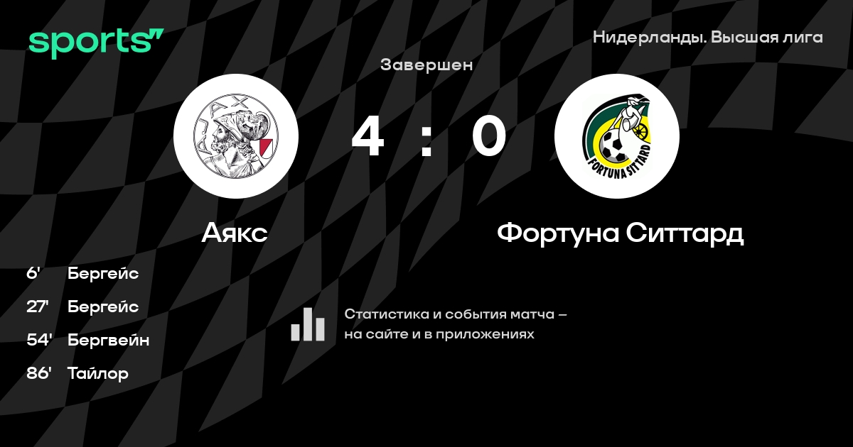 Аякс – Фортуна Ситтард: Аякс побеждает в 8 последних очных матчах