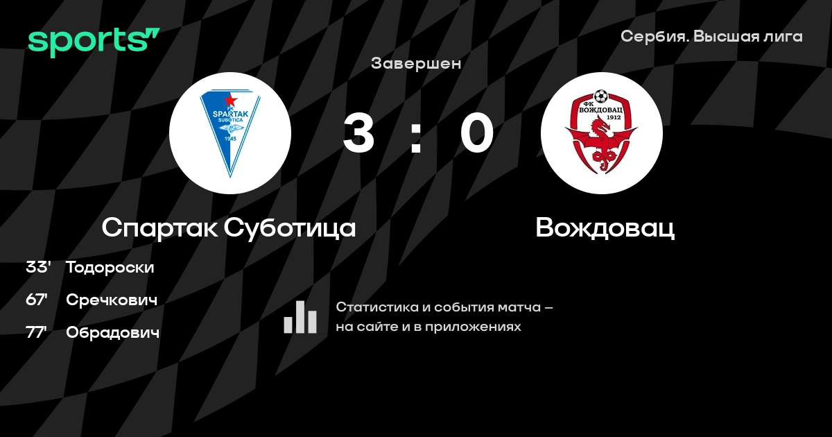 Спартак Суботица – Вождовац: Спартак Суботица забивает в 7 из 9 последних матчей против этого соперника