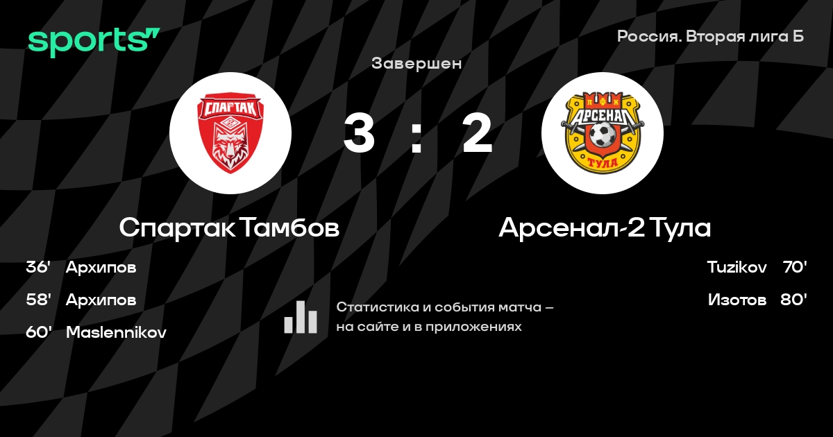 Трансляция Спартак Тамбов - Арсенал-2 Тула