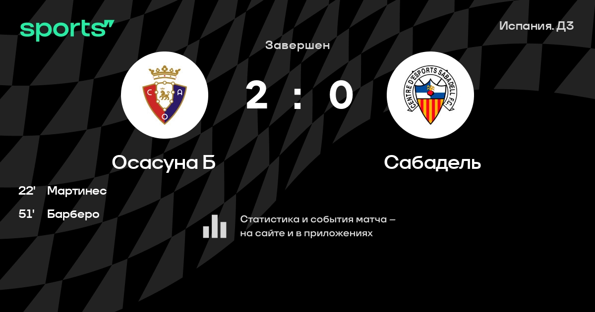 Осасуна Б – Сабадель: Осасуна Б не проигрывает в 5 из 6 последних матчей против этого соперника