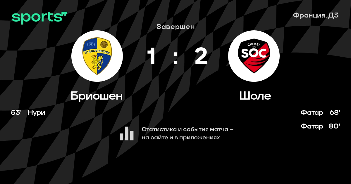 В последних 5 играх Бриошен забивает в среднем 1.00 гола за игру