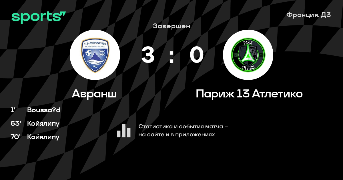 Результат прошлой игры в турнире «Насьональ»: Париж 13 Атлетико – Ле-Ман 1:1. После 21 туров Париж 13 Атлетико набирает 18 очков и занимает 17 место в турнире. Лучший бомбардир команды – J. Kaloukadilandi: он забил 4 в 4 матчах. Париж 13 Атлетико не может выиграть в 6 последних матчах в рамках турнира «Насьональ». В 3 последних матчах в турнире «Насьональ» Париж 13 Атлетико обязательно забивает. Париж 13 Атлетико пропускает в 6 последних матчах в турнире «Насьональ». В последних 5 играх Париж 13 Атлетико забивает 4 голов. В последних 5 играх Париж 13 Атлетико пропускает 9 голов.