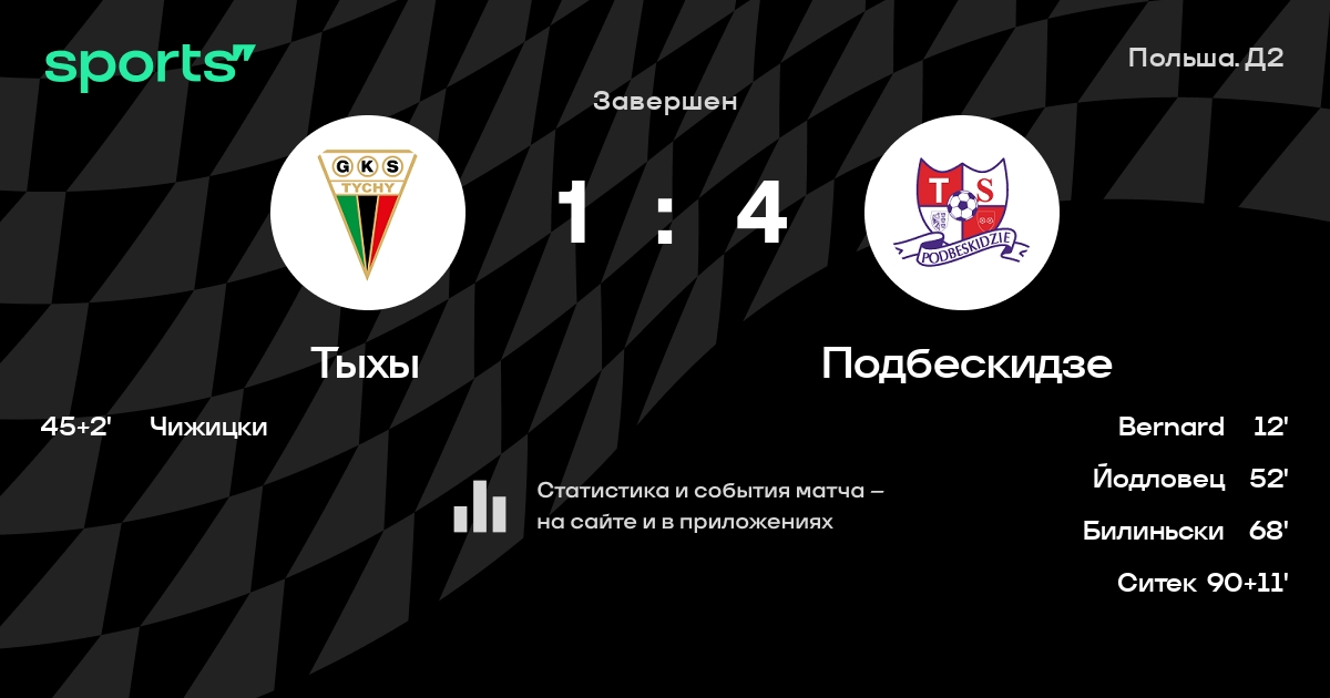 Тыхы – Подбескидзе: Подбескидзе не проигрывает в 14 последних матчах против этого соперника