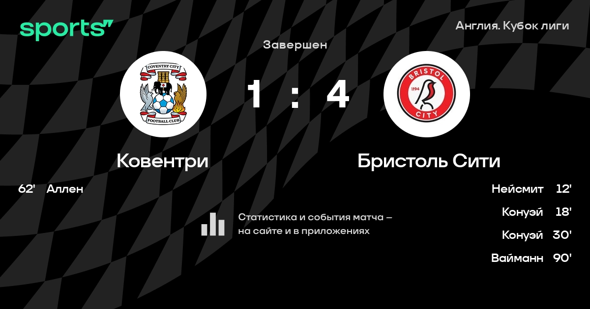 Ковентри – Бристоль Сити: Бристоль Сити забивает в 4 последних матчах против этого соперника