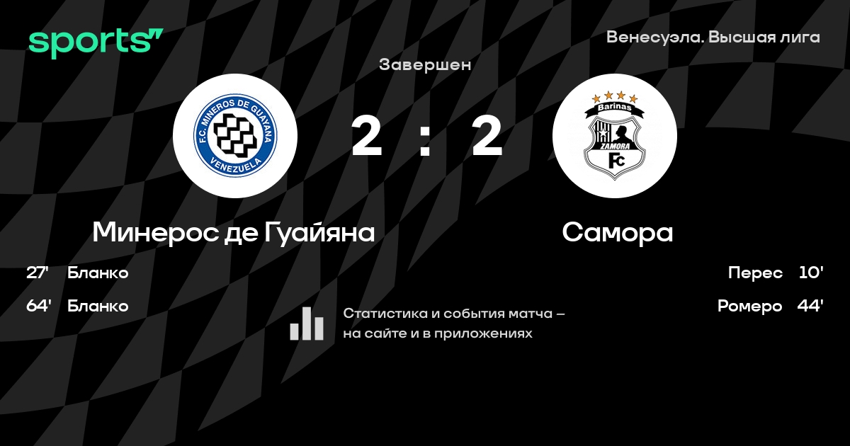 Минерос де Гуайяна – Самора: Минерос де Гуайяна забивает в 4 последних матчах против этого соперника