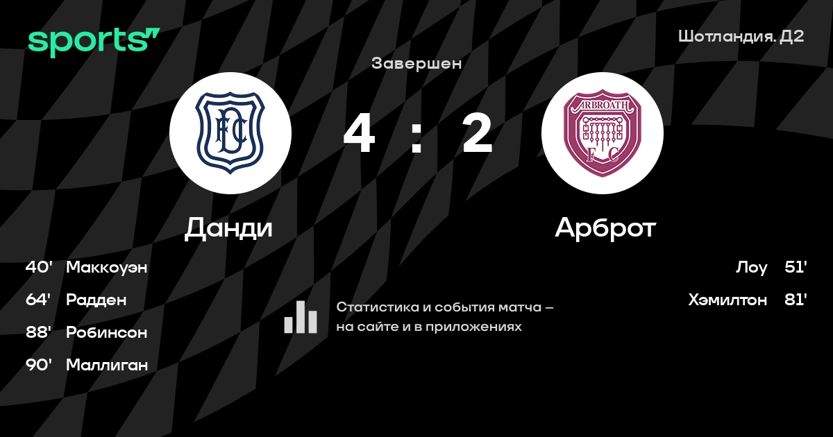 Данди – Арброт: Данди не проигрывает в 8 последних матчах против этого соперника