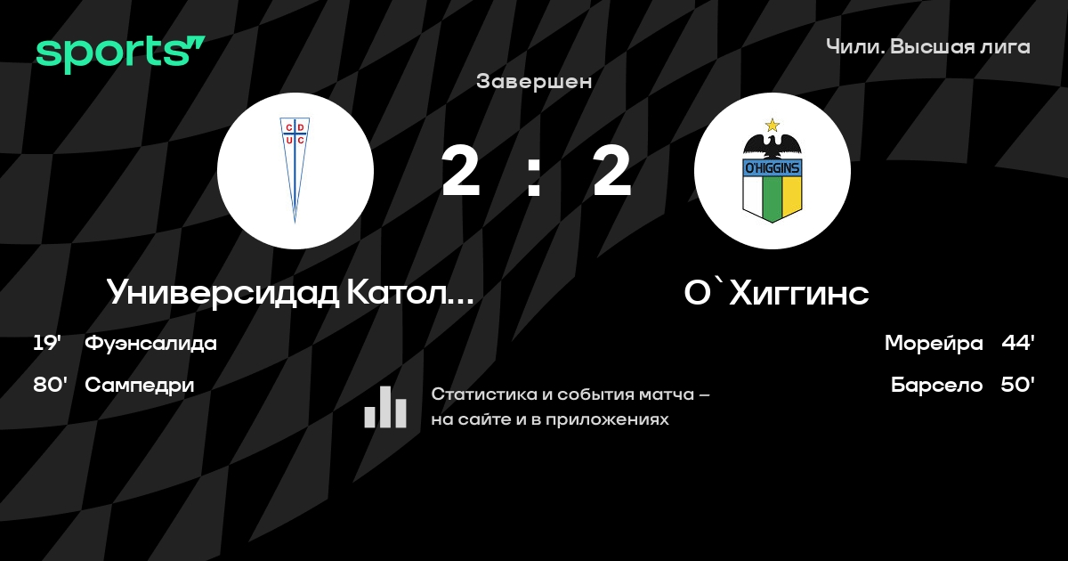Универсидад Католика – О`Хиггинс: Универсидад Католика забивает в 3 последних матчах против этого соперника