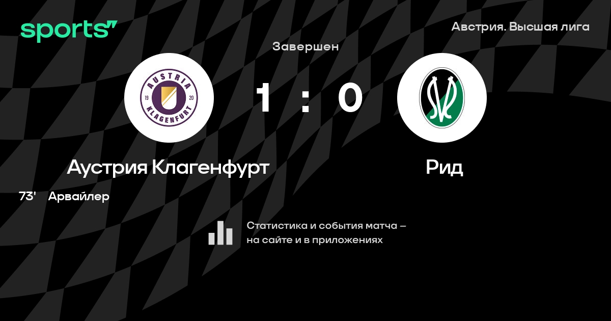 Аустрия Клагенфурт – Рид: Рид забивает в 6 последних матчах против этого соперника