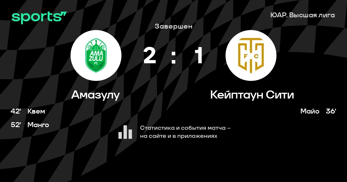 Амазулу – Кейптаун Сити: Амазулу не проигрывает в 7 последних матчах против этого соперника