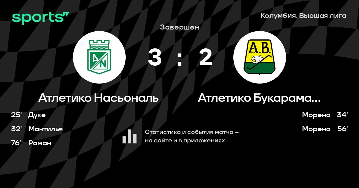 Трансляция Атлетико Насьональ - Атлетико Букараманга