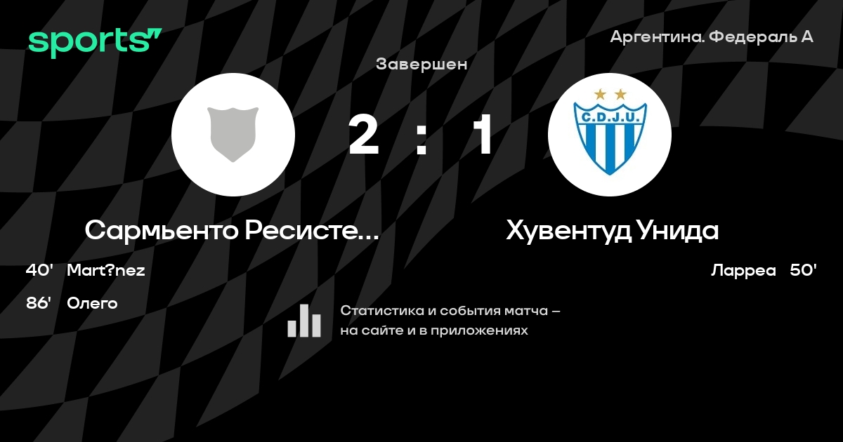 Сармьенто Ресистенсия - Хувентуд Унида: положение в турнире