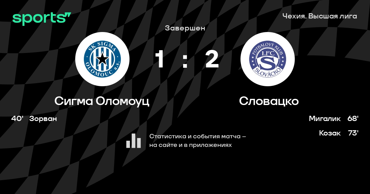 Сигма Оломоуц – Словацко: Сигма Оломоуц не проигрывает в 8 из 10 последних матчей против этого соперника дома в турнире «Лига 1»