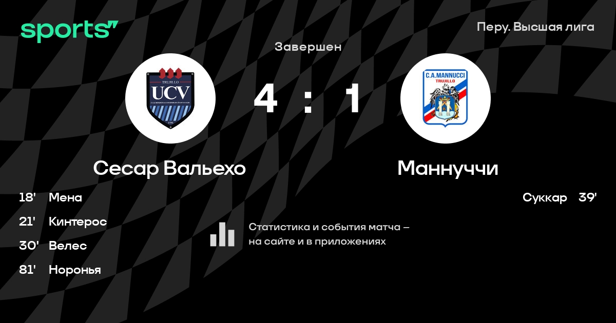 Сесар Вальехо – Маннуччи: Сесар Вальехо не проигрывает в 12 из 13 последних матчей против этого соперника