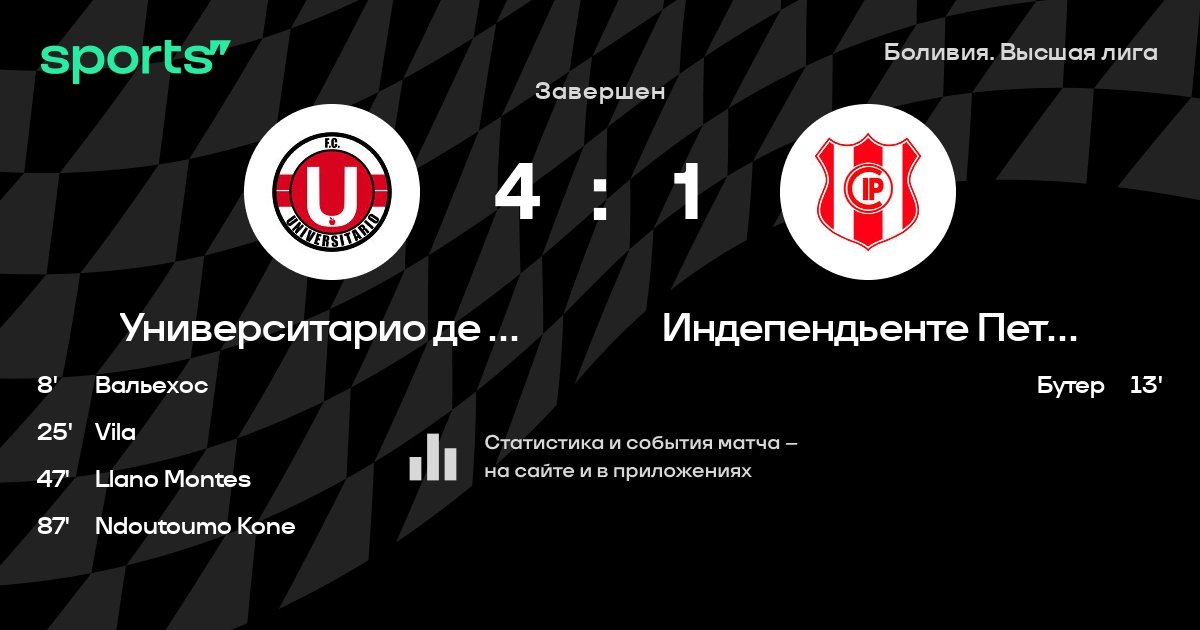 Universitario de Vinto играет вничью в 3 последних очных встречах