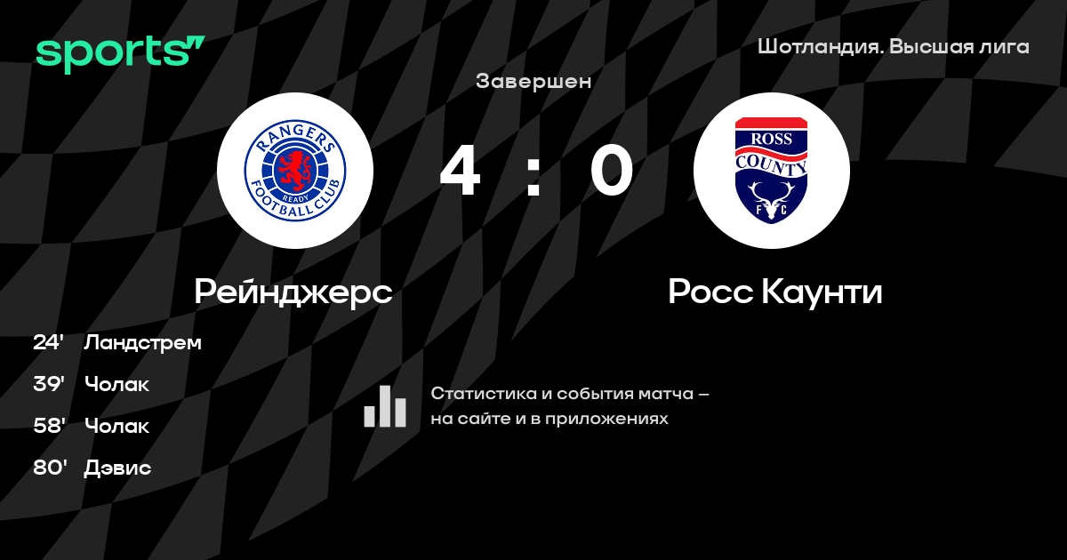 Рейнджерс – Росс Каунти: Рейнджерс не проигрывает в 16 последних матчах против этого соперника