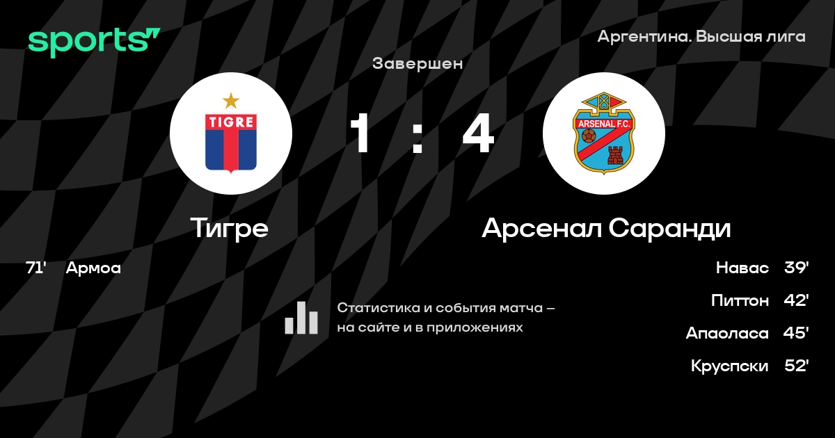 Тигре – Арсенал Саранди: Арсенал Саранди не проигрывает в 5 последних матчах против этого соперника