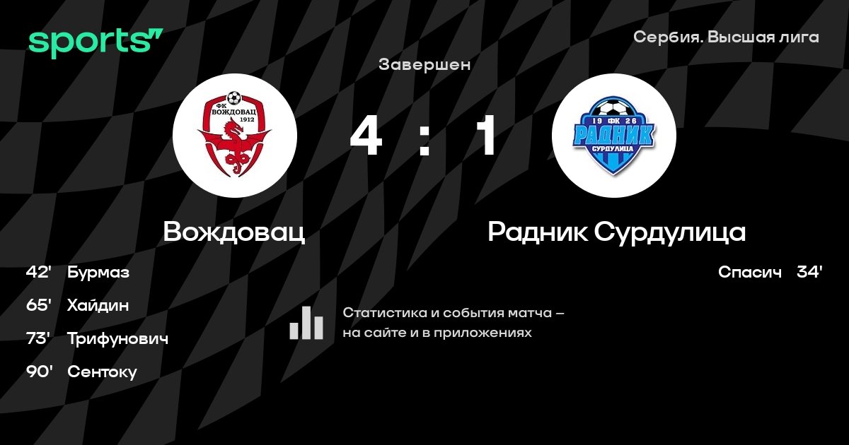 Вождовац – Радник Сурдулица: Радник Сурдулица забивает в 7 из 9 последних матчей против этого соперника
