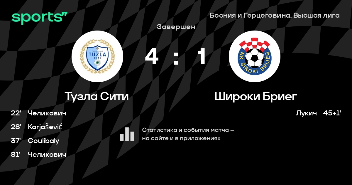 Тузла Сити – Широки Бриег: Широки Бриег не проигрывает в 6 из 8 последних матчей против этого соперника