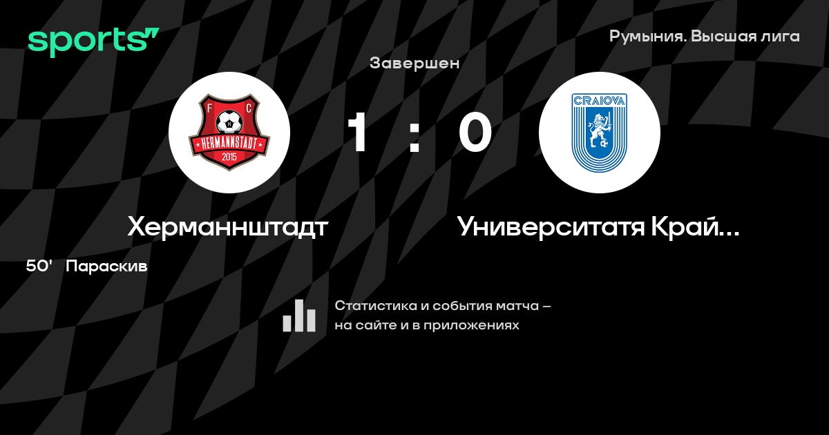 Херманнштадт – КСУ Крайова: КСУ Крайова не пропускает в 3 последних матчах против этого соперника
