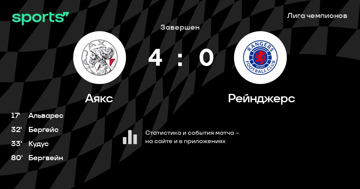 Трансляция Аякс - Рейнджерс