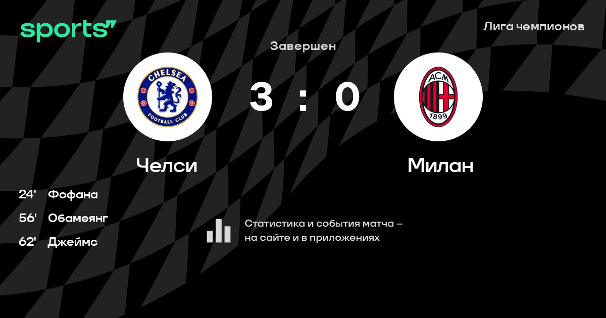 Аррисабалага - Кулибали, Тиаго Силва, Фофана - Чилуэлл, Маунт, Стерлинг, Ковачич, Лофтус-Чик, Джеймс - ОбамеянгЗапасные: Беттинелли, Менди, Аспиликуэта, Чалоба, Кукурелья, Жоржиньо, Галлахер, Пулишич, Закария, Зиеш, Броя, Хавертц