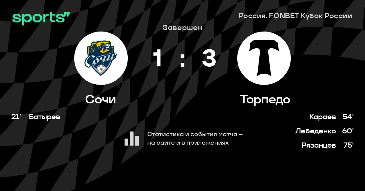Сочи – Торпедо: Торпедо забивает в 3 последних матчах против этого соперника