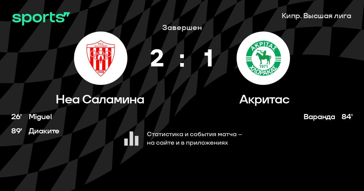 Неа Саламина – Akritas Chlorakas: Неа Саламина не пропускает в 4 последних матчах против этого соперника