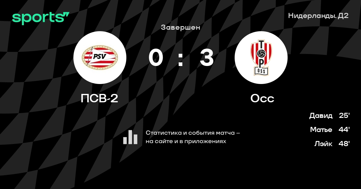 ПСВ-2 – Осс: Осс не проигрывает в 6 последних матчах против этого соперника