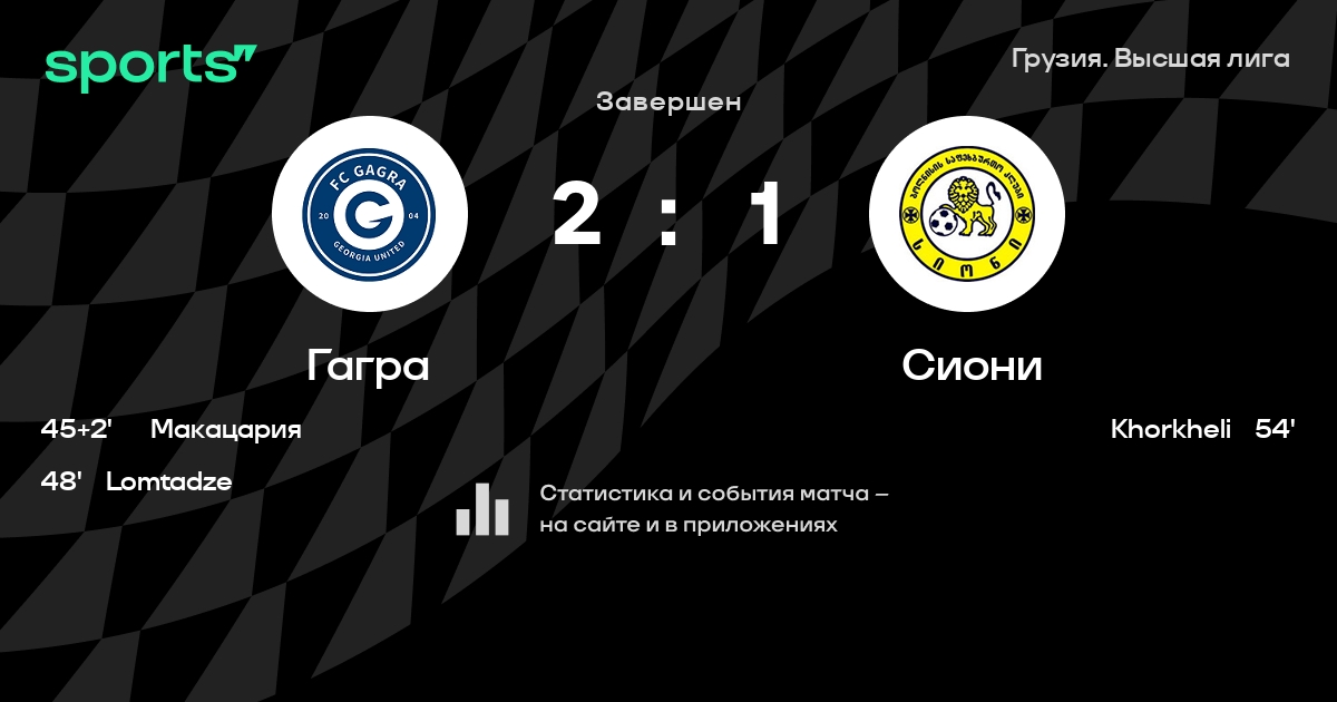 Гагра – Сиони: Сиони не проигрывает в 5 последних матчах против этого соперника