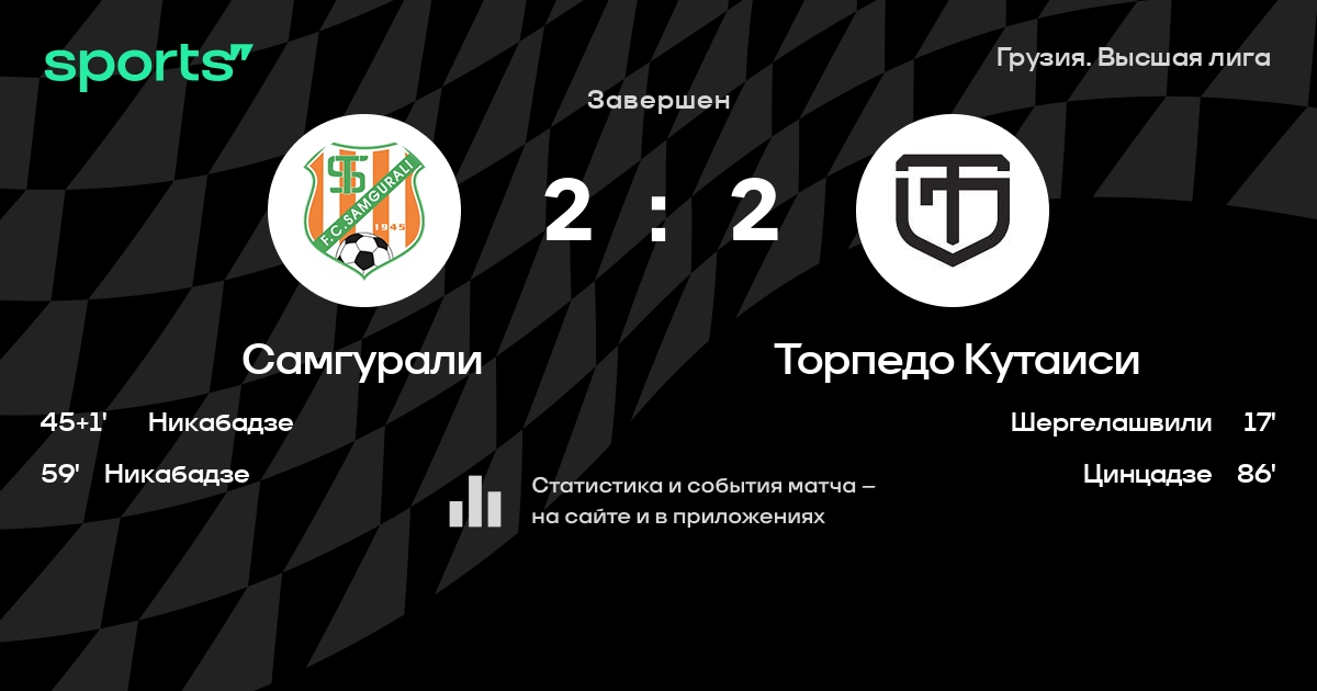 Самгурали – Торпедо Кутаиси: Самгурали забивает в 4 последних матчах против этого соперника