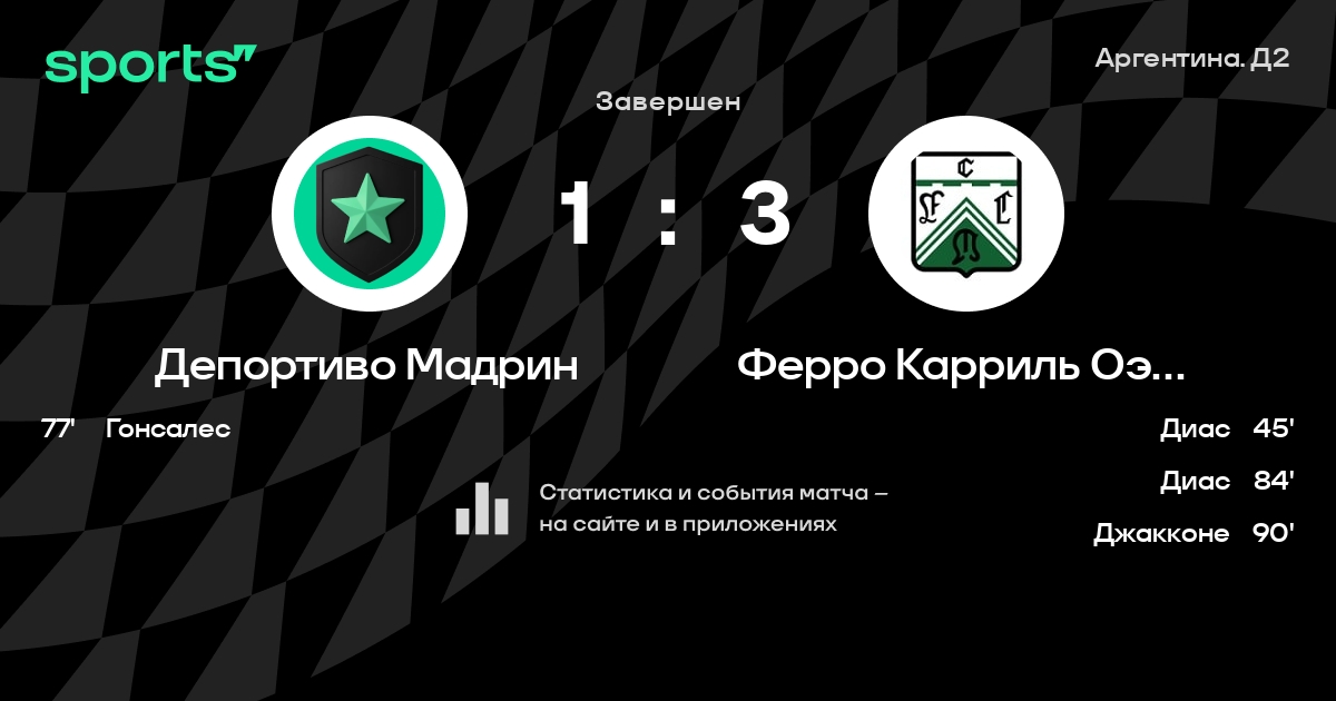Трансляция Депортиво Мадрин - Ферро Карриль Оэсте