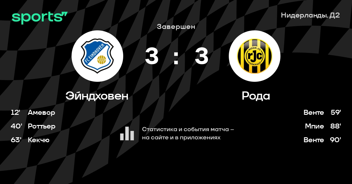 Эйндховен – Рода: Рода не проигрывает в 6 последних матчах против этого соперника