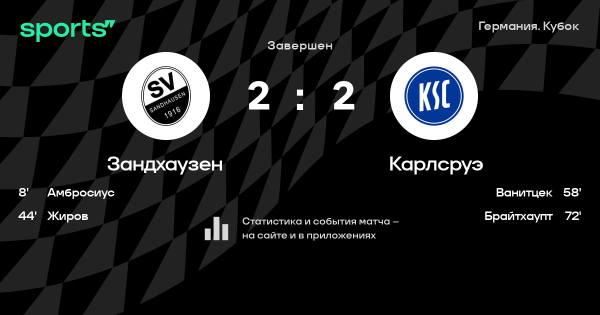 Зандхаузен – Карлсруэ: Карлсруэ не проигрывает в 6 из 8 последних матчей против этого соперника