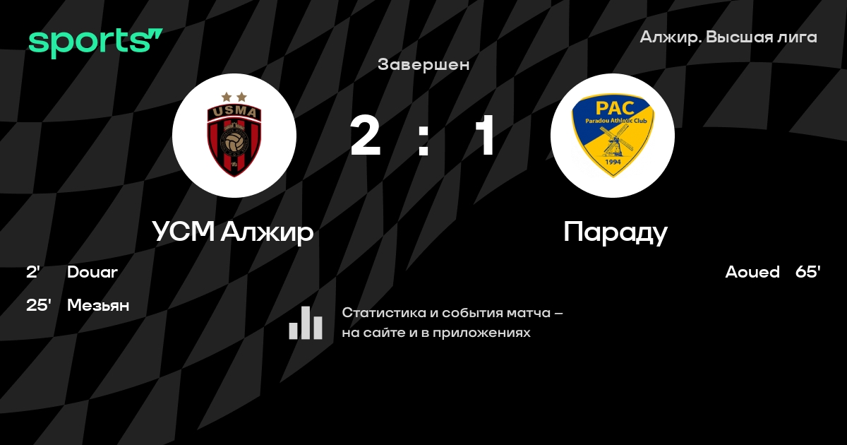 УСМ Алжир – Параду: УСМ Алжир побеждает в 3 последних очных матчах
