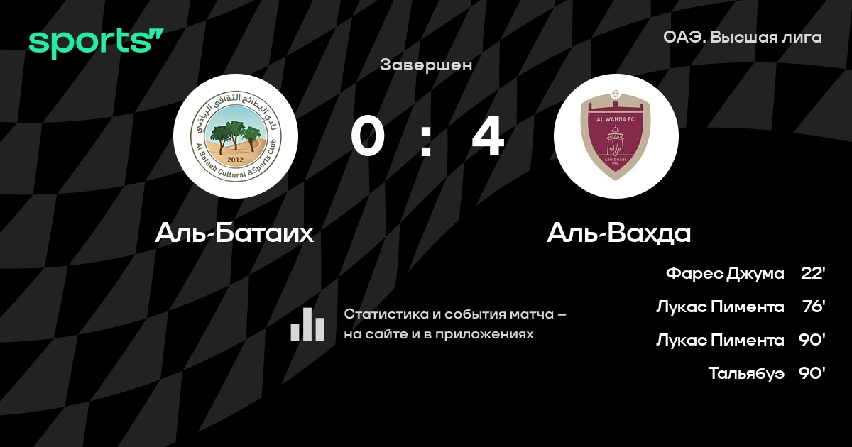3 | Аль-Вахда | 26 | 15 | 7 | 4 | 48 | 26 | +22 | 52 | ||