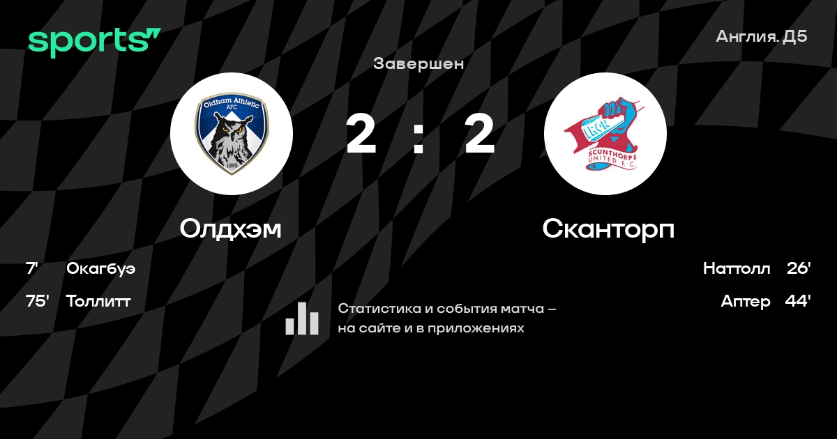 Олдхэм – Сканторп: Сканторп не проигрывает в 5 из 7 последних матчей против этого соперника